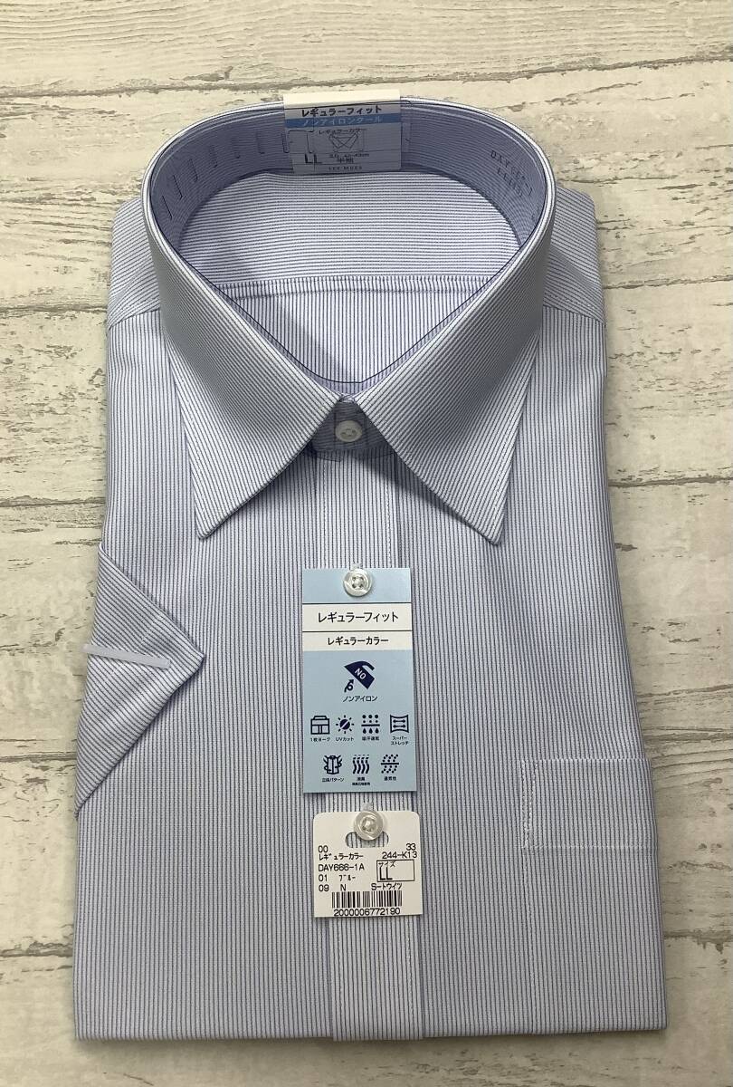 - 新品未使用 半袖カッターシャツ LLサイズ 43cm ブルーストライプ クールビズ対応 レギュラーカラードレスシャツ