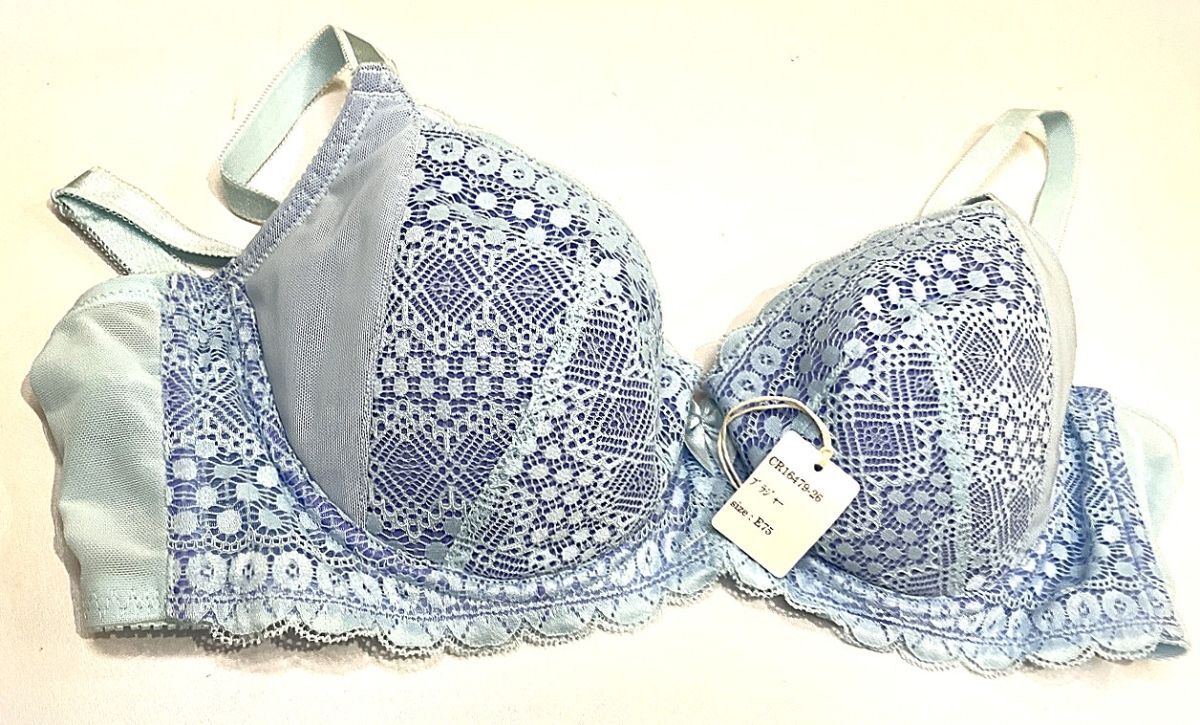 - CR16479-26 IB⑦【特価】新品 大きい ブラジャー E75 1枚 ライトブルー 花柄 3/4カップレース 有名ブランド 脇高 レディース