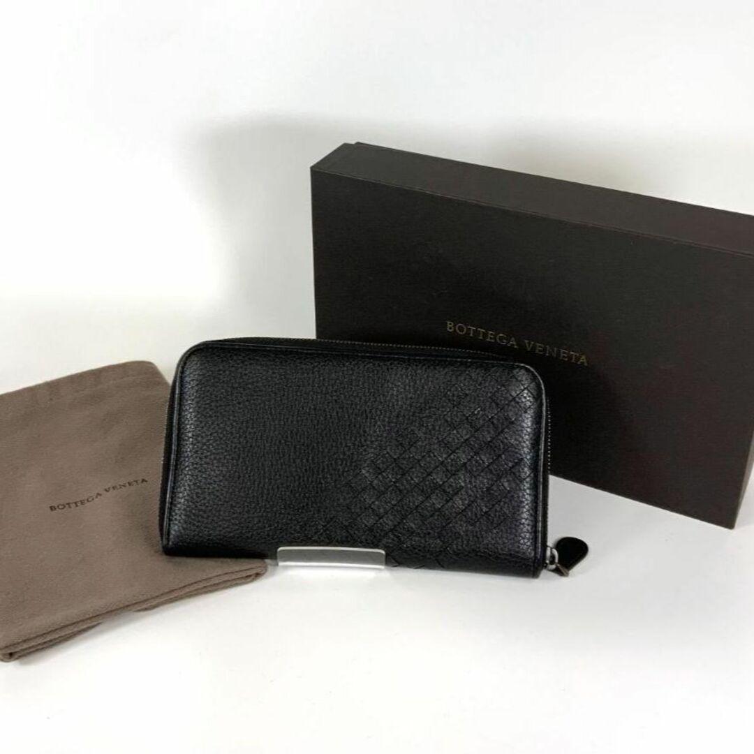 > ボッテガ・ヴェネタ イントレチャート ラウンドファスナー長財布 メンズ 美品