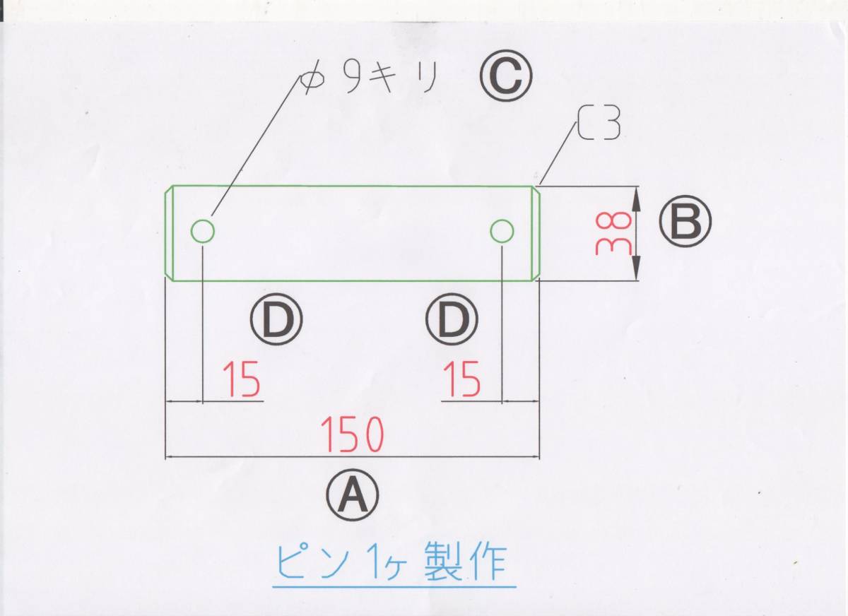 - NO380 Φ38用 全長150mm 2か所ボルト穴付きバケットピン 重機 パワーショベル