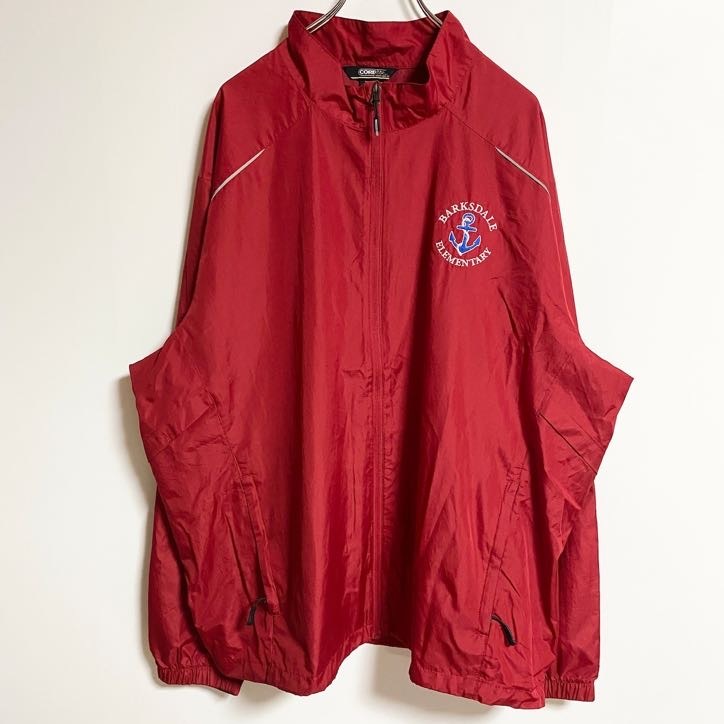 > 古着 used CORE365 長袖ナイロンジャケット ワンポイント刺繍 赤 レッド ビックシルエット XXLサイズ