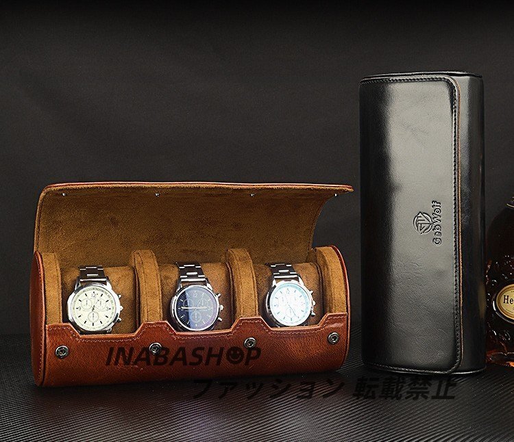 - 3本用 腕時計ケース 本革 時計ケース持ち運び 便利 ウオッチケース 収納ボックス コレクションケース 本革 持ち運び コンパクト プレゼント