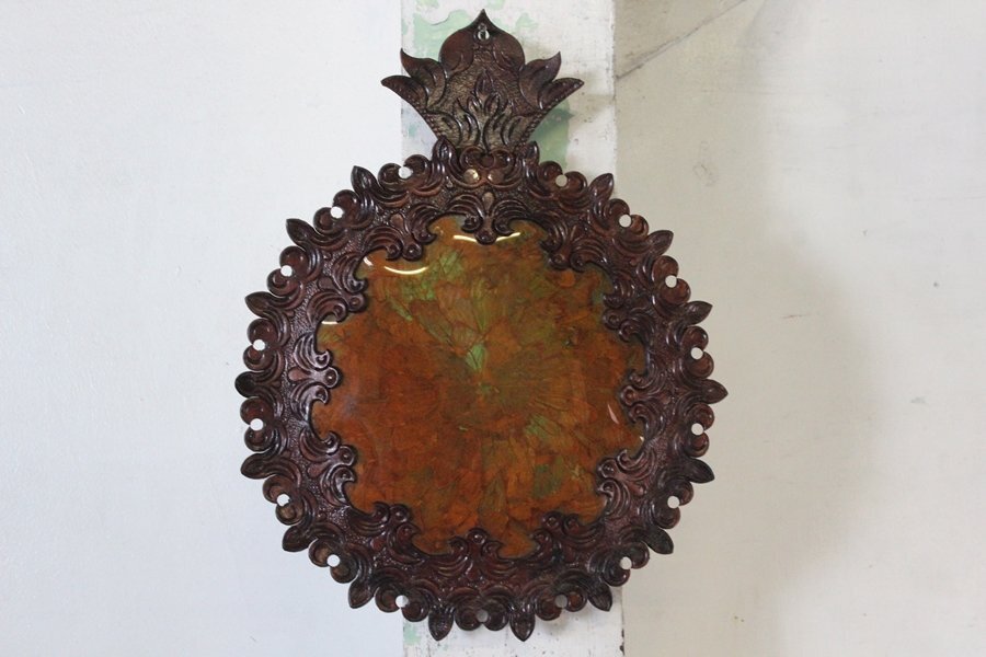 > TB526ブラジル製 蝶の羽根細工 レザーフレーム◇革製/壁掛/掛飾/蝶画/額装/昆虫標本/アート/工芸/時代/骨董/古美術/古道具タグボート