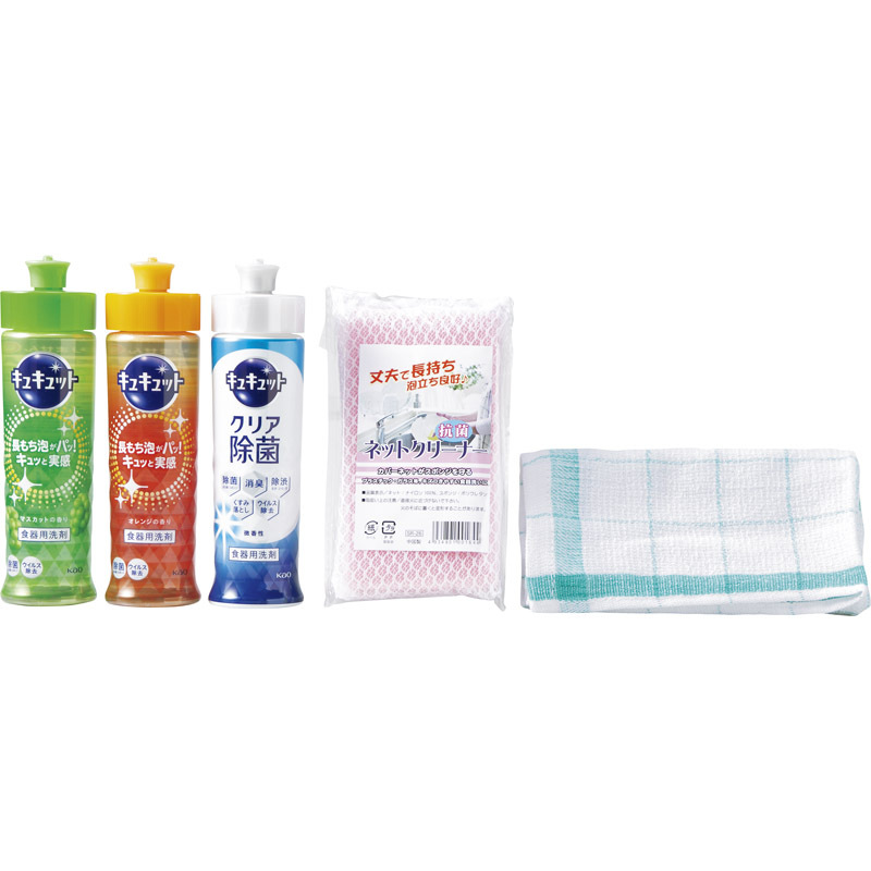〇注意事項・送料800円が販売価格に含まれています・お取り寄せ商品です。弊社にて手配後、メーカー・卸業者からの直送になります。・まれにメーカー欠品、出荷遅延等が発生致します。問題発生時は別途メールにてご連絡致します。・配送方法の指定、日時指定、置き配、ギフト対応、他商品との同梱配送などは対応できません。・まとめ買いや複数購入の場合は通常より発送に時間が掛かる場合がございます・複数個口の場合、2階以上への搬入ができない場合があります。(その場合は1階での受け渡しとなります)・大型連休、お盆、年末年始などは発送をお休みさせていただく場合がございます・メーカー都合により、パッケージは予告なく変更される場合がございます・梱包用のダンボールはリサイクル品を使用させていただきます。・注文に関するご連絡(注文確定通知・発送通知など)はメールでご案内させていただきます※商品ページの内容について、少しでもご不明な点などがございましたら購入前に一度ご連絡ください〇商品説明あらゆるギフトシーンにおすすめです!複数色展開。1個の注文はランダムで1個、複数の場合は色混ぜでお届けします。どのご家庭でももらって嬉しいキッチンセット〇商品仕様●内容:花王キュキュット:220mL×3、ネットクリーナー・ふきん×各1規格●化粧箱入(200×205×56mm) 945g●加工地:日本(出典:株式会社 八大)