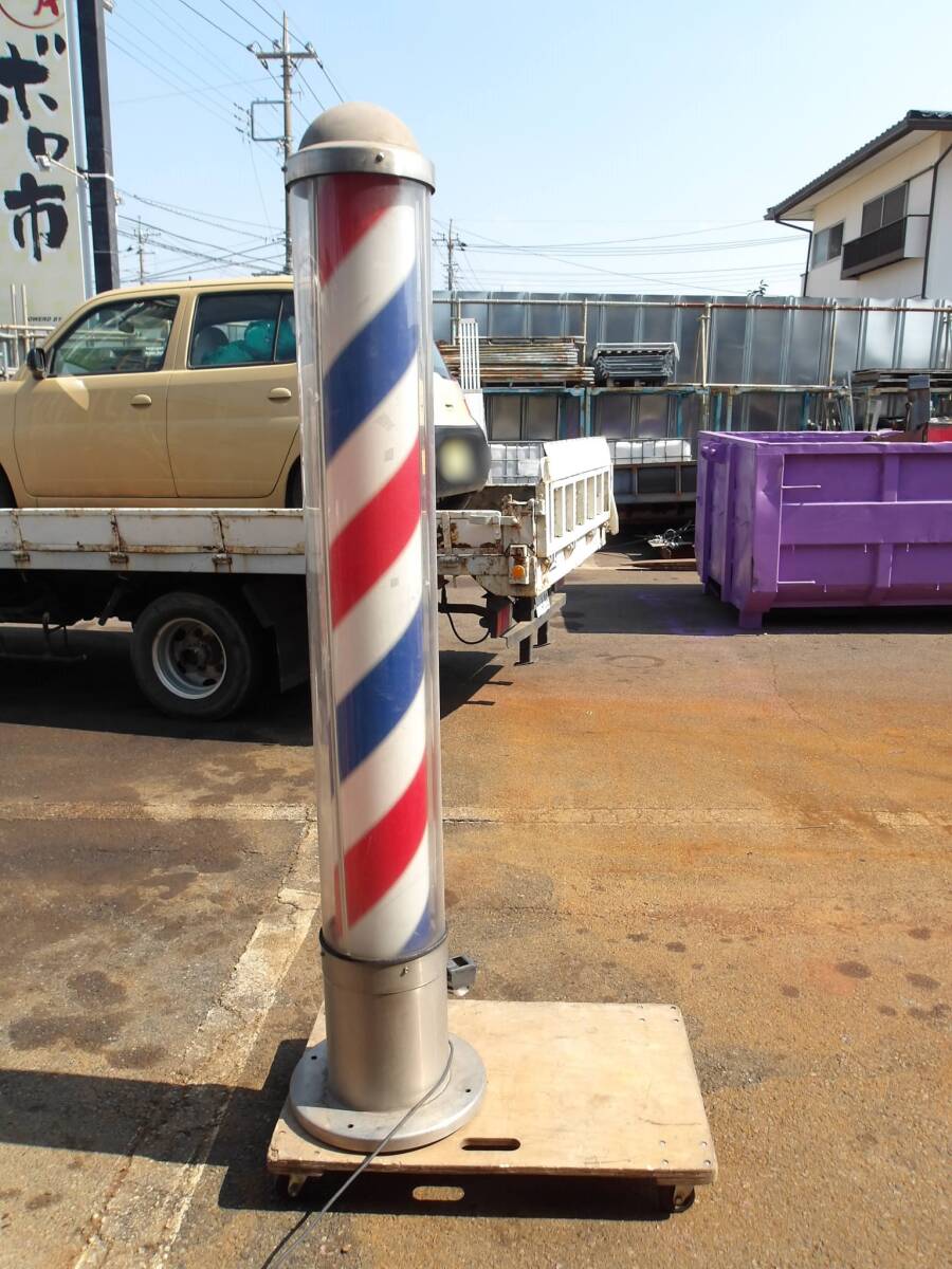 - 【4255】動作確認済み サインポール スタンドポール 回転式 高さ約200cm 筒幅約25cm 足幅約40cm 美容室 理容室 床屋 ポール 看板