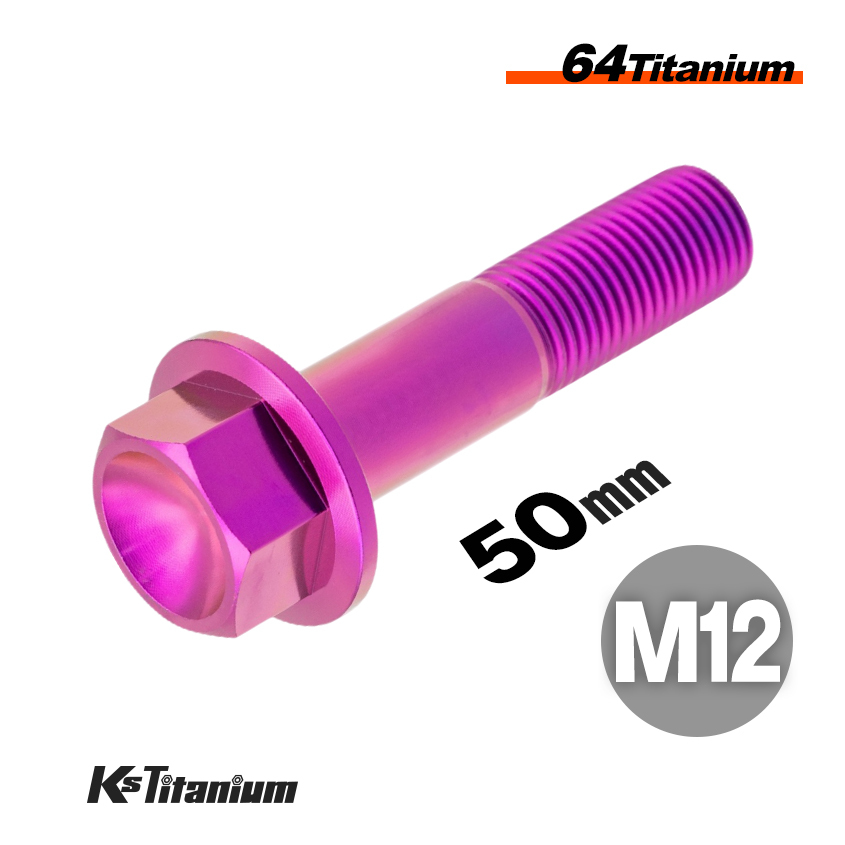 > チタンボルト M12×50 スレッド25mm P1.25 フランジボルト パープル 1本売り 64チタン M12 バイク レストア パーツ