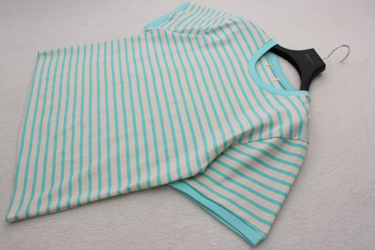 - 3833 新品 クルーネックボーダーTシャツ ミントFサイズ