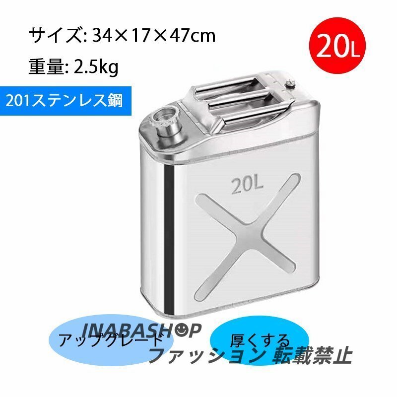 - 最新型SUS201 ガソリン携行缶 灯油タンク ポータブル燃料タンク 軽量耐久 ステンレス 防錆 防爆 持ち運び便利 20L