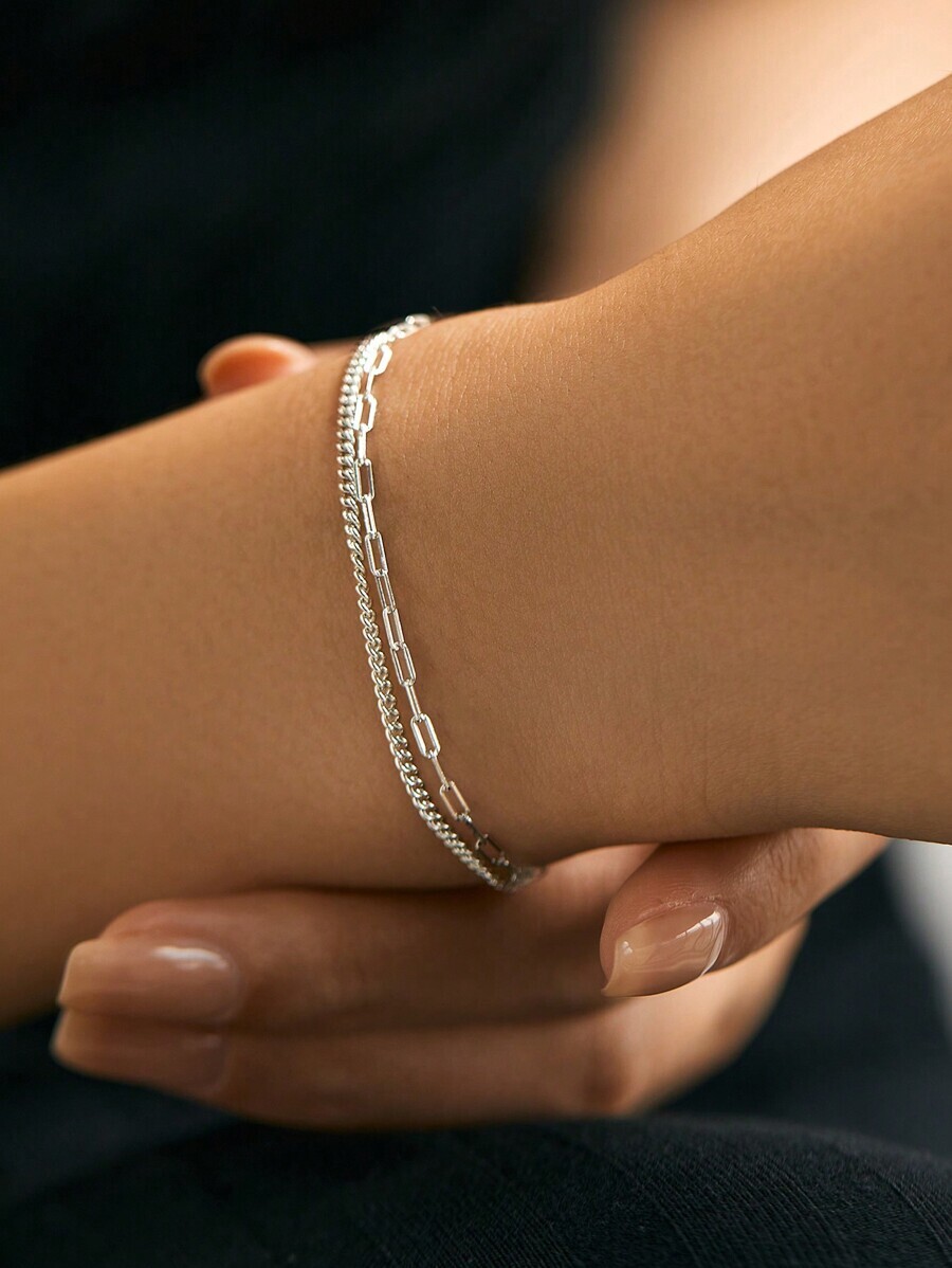 - ジュエリー レディース ブレスレット チェーン 1 個の 925 スターリングシルバーシンプルなダブルチェーンミックス二重層ブレス