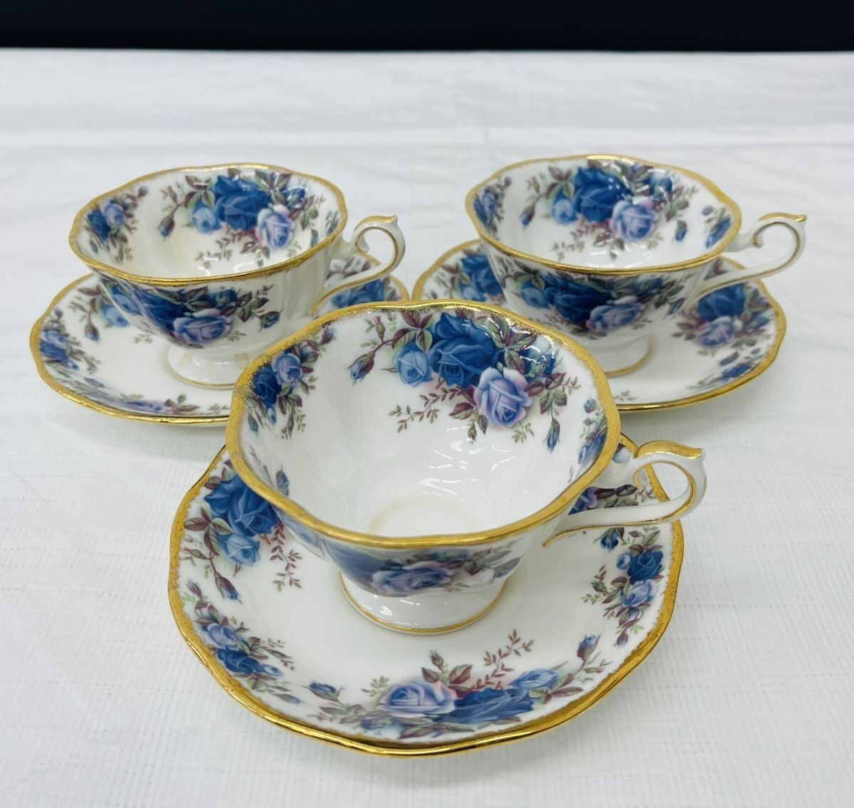 - V591-I78-104 ROYAL ALBERT ロイヤル アルバート ムーンライトローズ カップ&ソーサー 3客 花柄 洋食器 3点セット IM