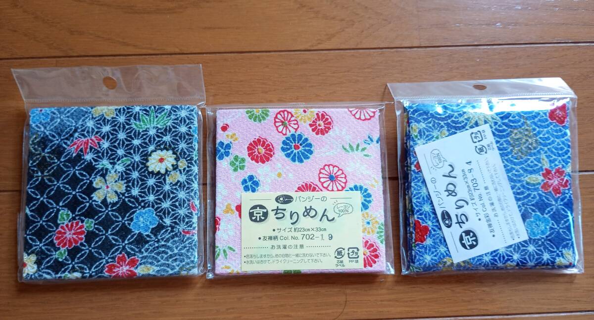 - レトロ 京ちりめん 金彩 友禅金彩 友禅柄 3色3柄 レーヨン100% 日本製 パンジー㈱
