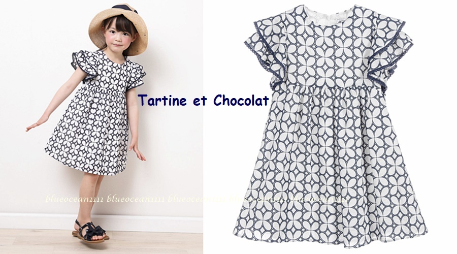- 新品 国内販売価格30,800円 【タルティーヌエショコラ】PARIS企画 フラワー刺繍 フレアスリーブワンピース 140-150cm スカート ブラウス