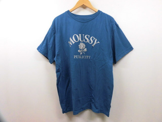 - MOUSSY マウジー ロゴ 半袖 Tシャツ 丸首 トップス ブルー 青 フリーサイズ