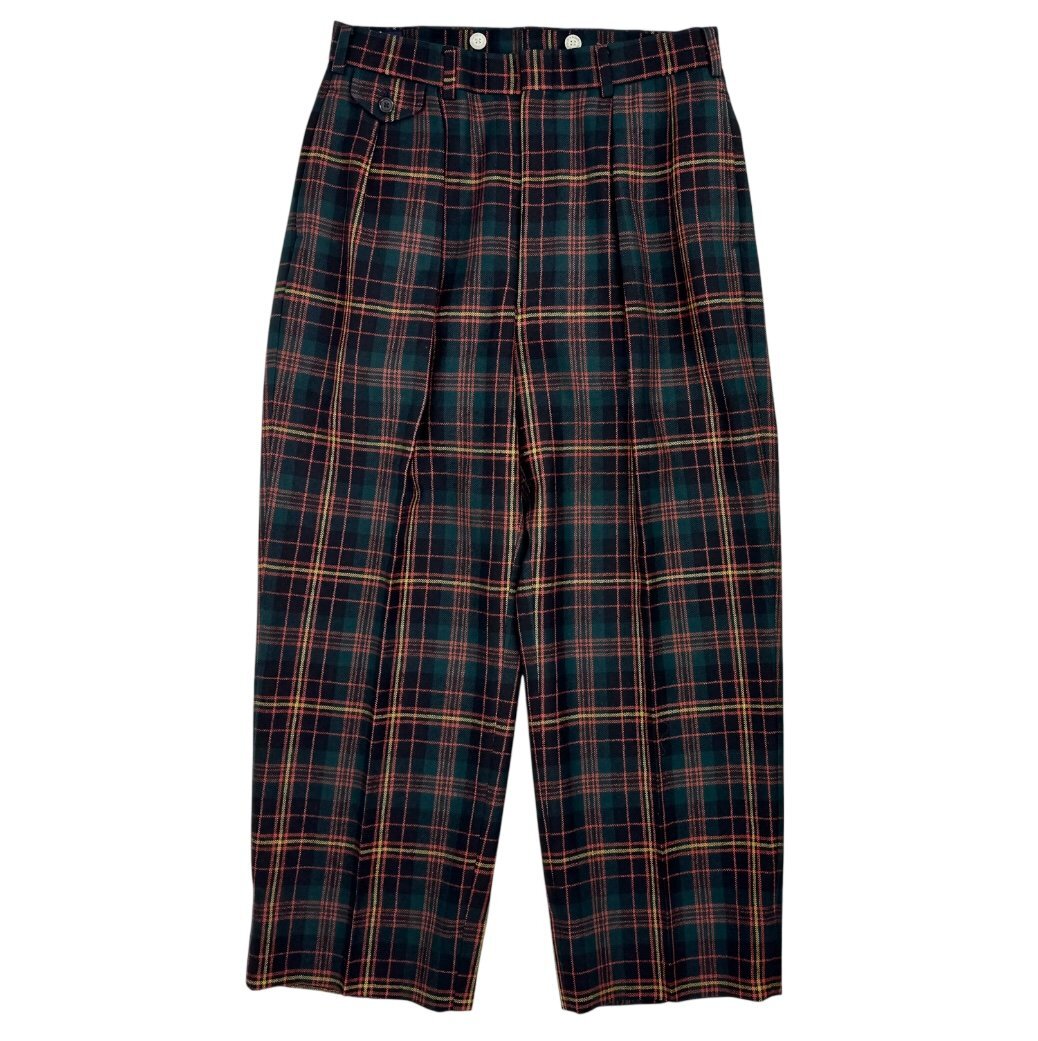 - 90s Polo Ralph Lauren ポロ ラルフローレン タータン チェック柄 ウール ツータック ワイド スラックス パンツ 秋冬 W84cm 緑×赤 日本製