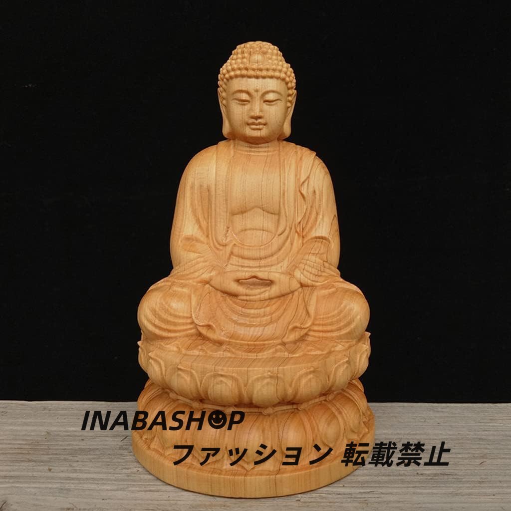 - 木彫仏像【如来】釈迦如来座像 天然 崖柏木 木製仏像 釈迦牟尼仏 仏教美術品 仏陀彫刻 贈り物 ギフト お土産 お守り 風水 飾り(8.5センチ)