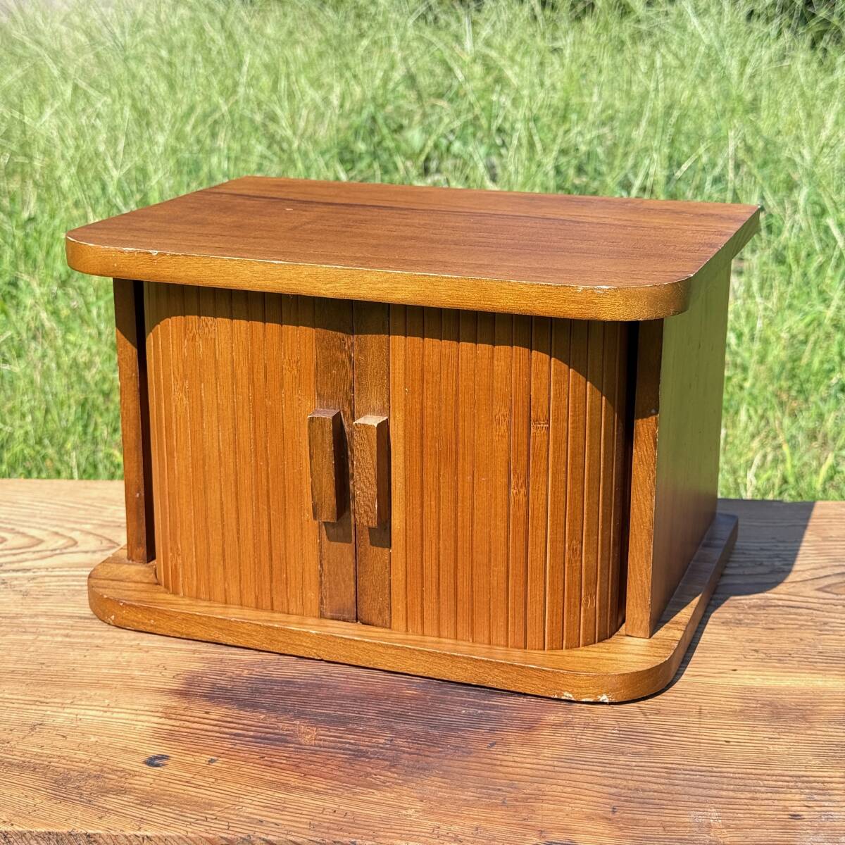 - ビンテージ 北欧風 蛇腹シャッター ロールフロント ウッドボックス 卓上ラック 小物入れ 幅30㎝ 奥行き22.5㎝ 高さ19㎝