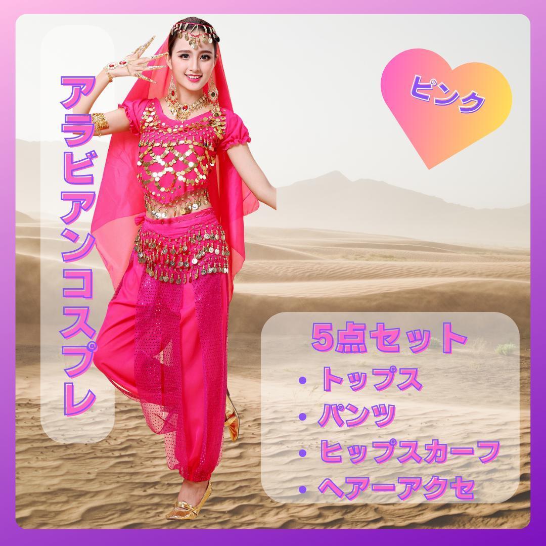 - ベリーダンス コスプレ アラビアン ハロウィン1183 ピンク5点セット 衣装 仮装 アラブ ジャスミン セクシー フリーサイズ