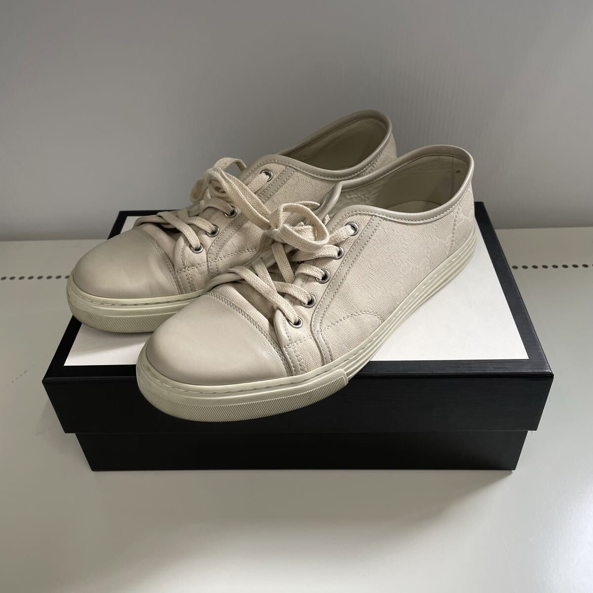 > 【GUCCI】グッチ ローカットスニーカー GGマーク スニーカー UK6 1/2 ファブリック 426189 ホワイト 33