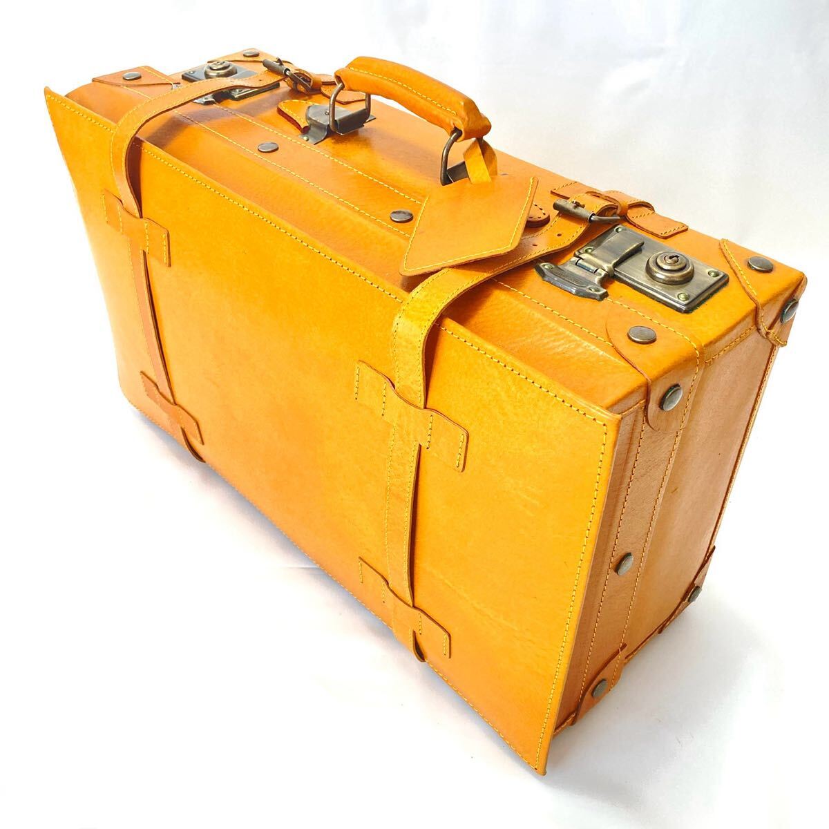 - 本革レザーアンティークトランク☆旅行鞄かばんアタッシュケース キャリーケース トラベルバッグ キャメル系 スーツケース