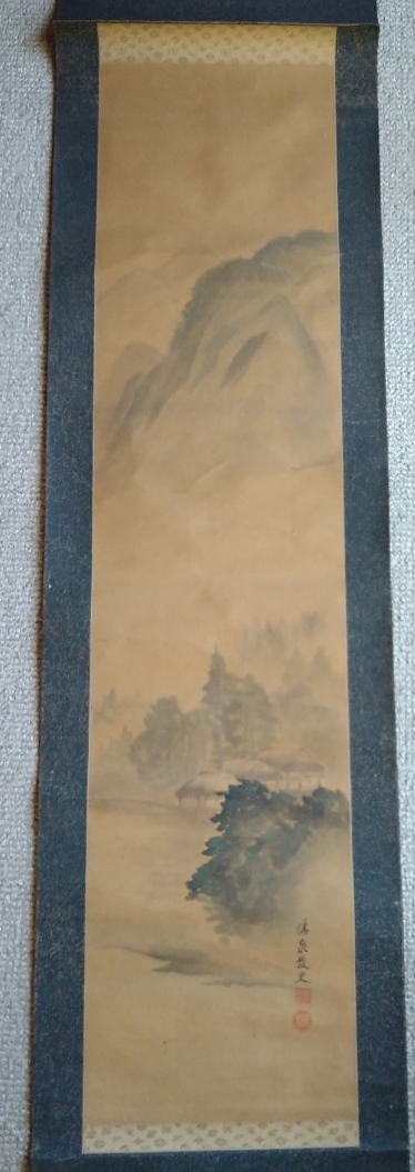 - 【お買得 掛軸】山水図 清泉散史 署名落款有り 紙本 日本画 文人画 南画 風景画 詳細未詳 作者未詳 真作か模写か不明