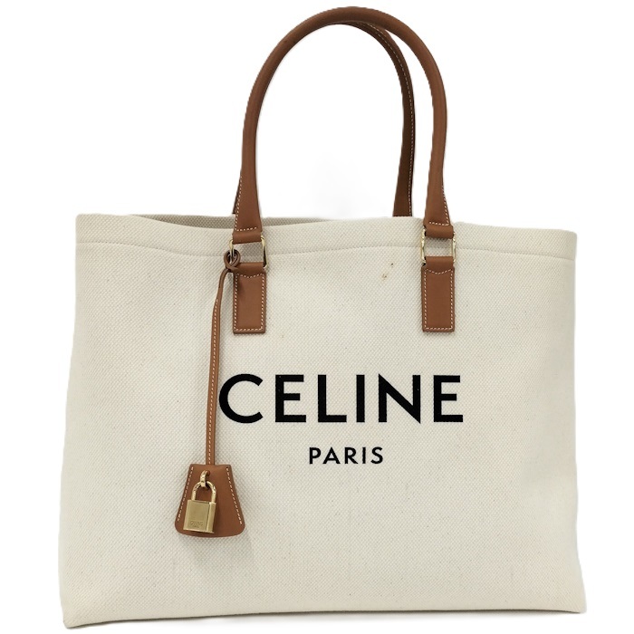 - CELINE ハンドバッグ オリゾンタル カバ キャンバス ベージュ