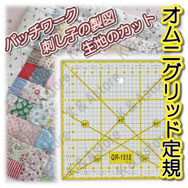 > オムニグリッド定規 パッチワーク用 スケール 直角 平行 カッター用 方眼 ものさし キルト キルティング カッティング 正方形 15cm センチ