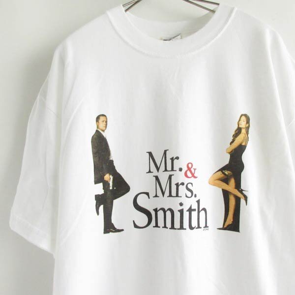 > 新品 Mr.&Mrs. Smith 半袖 ムービーTシャツ 白 L 映画 ブラッドピット アンジェリーナジョリー ブラピ D148-01-0003ZVW