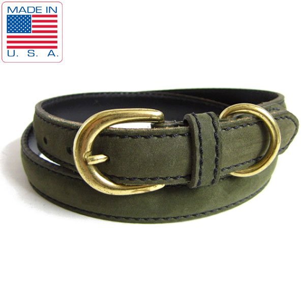 - 美品/USA製/LEJON/ヌバック/レザーベルト/緑系【表記XL/W33~37インチ】カジュアル/IVY/アイビー/アメトラ/アメリカ製/D142-51-0039Z