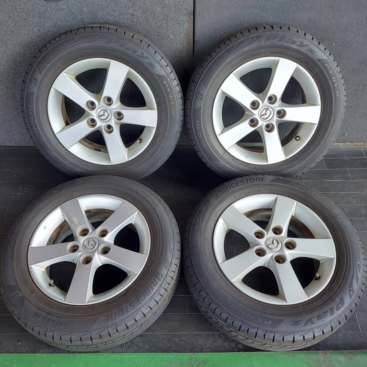 > マツダ純正 15インチ 15×6J +52.5 5H PCD114.3 タイヤ BRIDGESTONE 195/65R15 2023製 8分 アクセラ プレマシー アテンザ MPV
