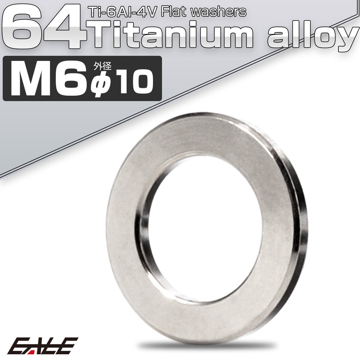 - 64チタン製 M6 外径10mm 平ワッシャー チタン原色 フラットワッシャー JA185