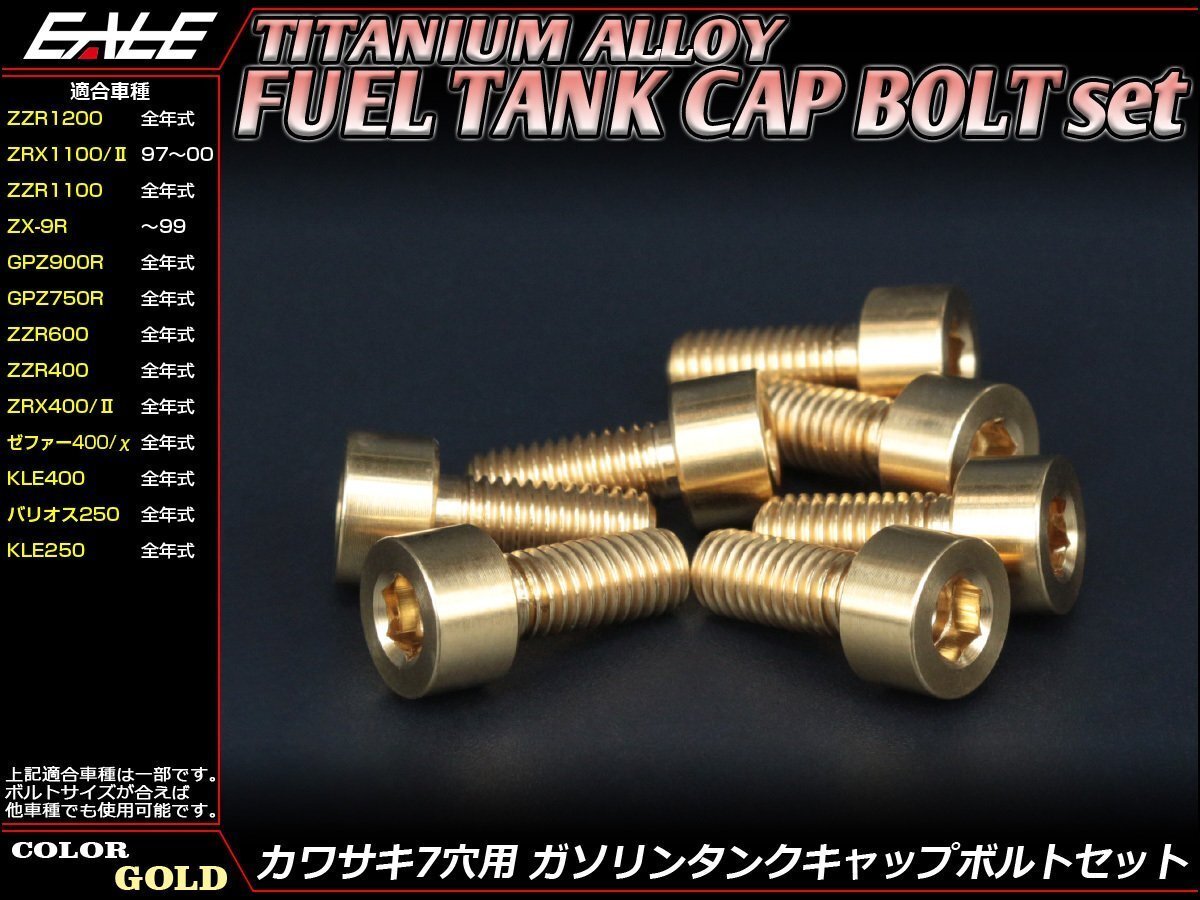> 64チタン合金(TC4/GR5)採用 カワサキ7穴 ガソリン(フューエル) タンク キャップボルト セット 7本組 GPZ900R/750Rなどに ゴールド JA262