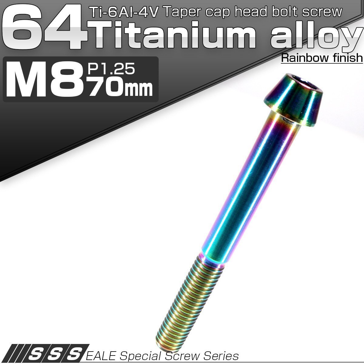 - チタンボルト M8×70mm P1.25 キャップボルト 虹色 レインボー 六角穴付きボルト テーパー JA136