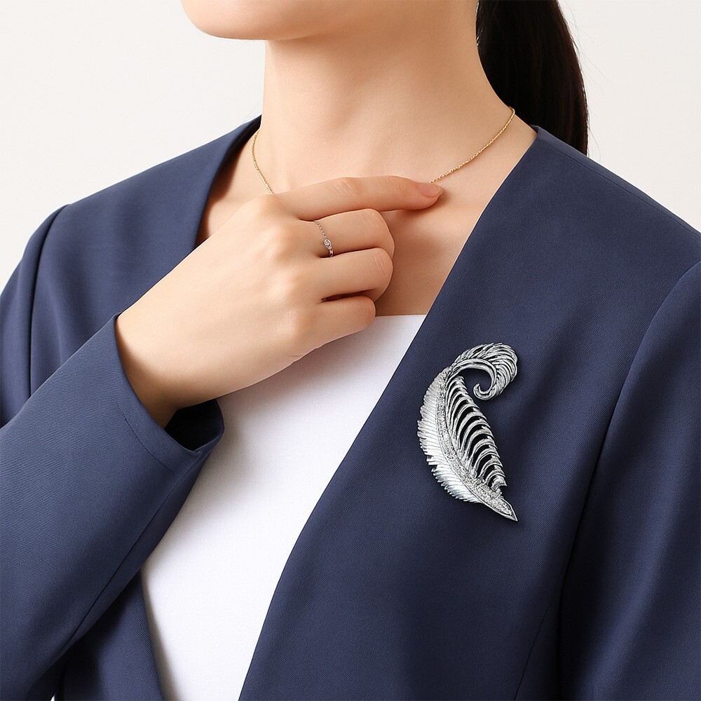 - 羽 立体彫刻 ヴィンテージ フェザー ブローチ シルバートーン ラインストーン装飾 コスチュームジュエリー 大ぶり 存在感 SOA59