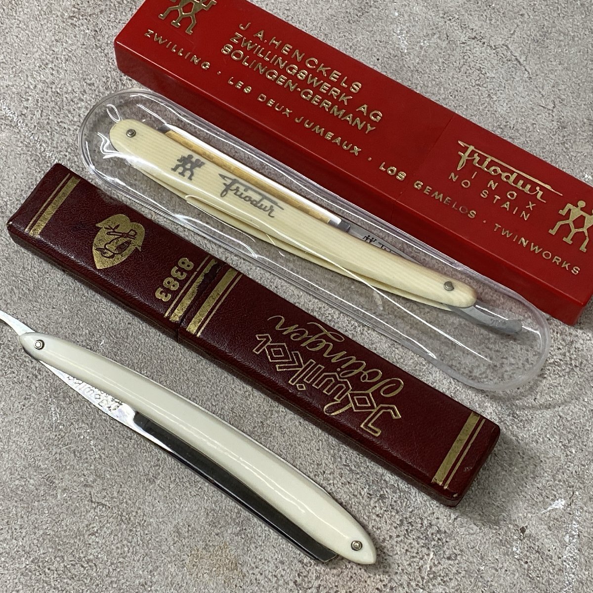 西洋剃刀 2点セット HENCKELS/ヘンケルス jowika 床屋 理容師 剃刀 カメソリ ケース付 25i菊HG拍卖