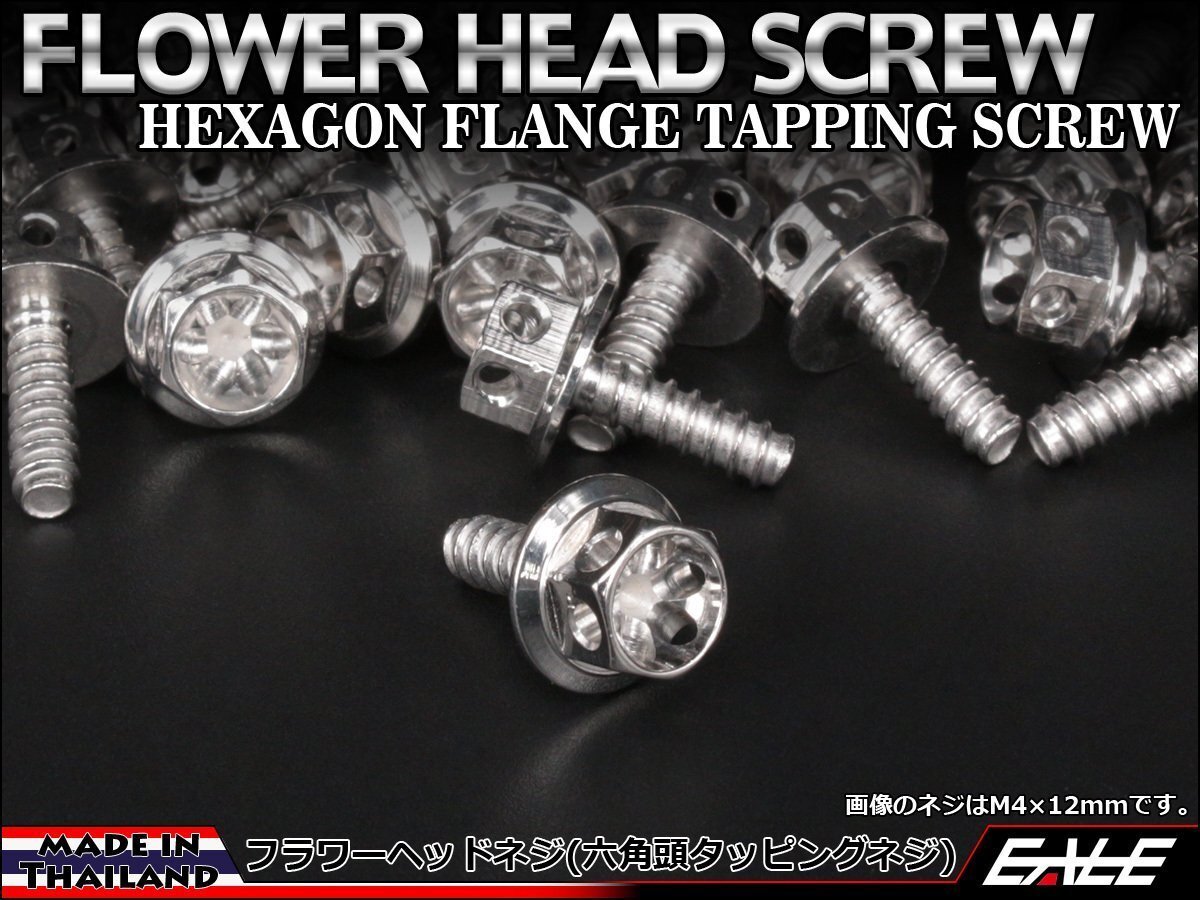 - M4×12mm SUSステンレス フラワーヘッドネジ タッピングネジ 六角頭 フランジ カウルやパネルなどに シルバー TC0016