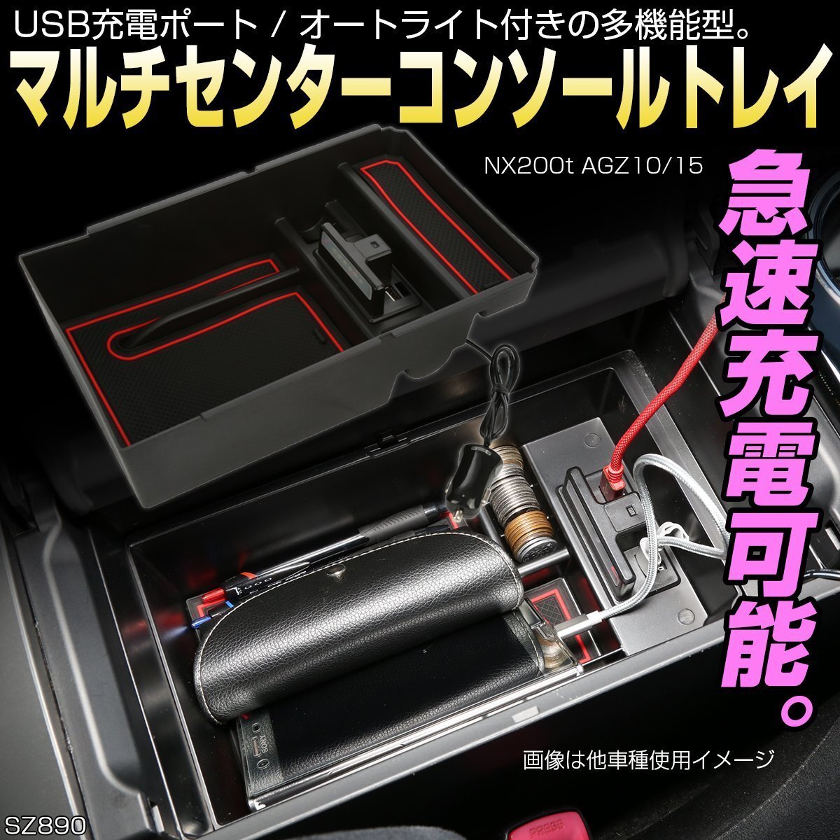 > 10系 レクサス NX200t AGZ10 AGZ15 センター コンソール トレイ USB 急速充電ポート搭載 オート式LEDライト付き SZ890