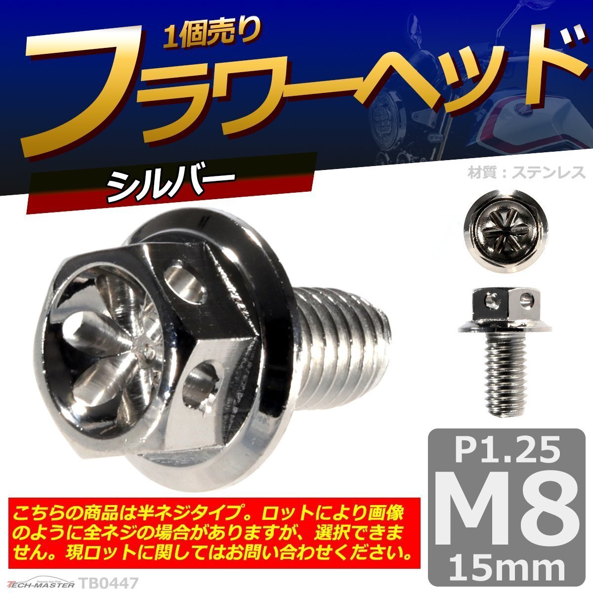 > M8×15mm P1.25 フラワーヘッド 六角ボルト ステンレス 車/バイク/自転車 ドレスアップ シルバー 1個 TB0447