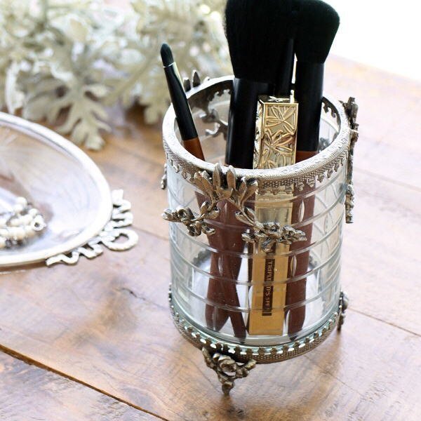 - 小物入れ おしゃれ 真鍮 ガラス エレガント ブラシスタンド 真鍮とガラスのサークルホルダー 送料無料(一部地域除く) vin1454