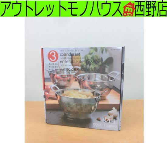新品 コストコ MIU ステンレスコランダー 3PC ハンドル付きザル3個セット 札幌 西野店