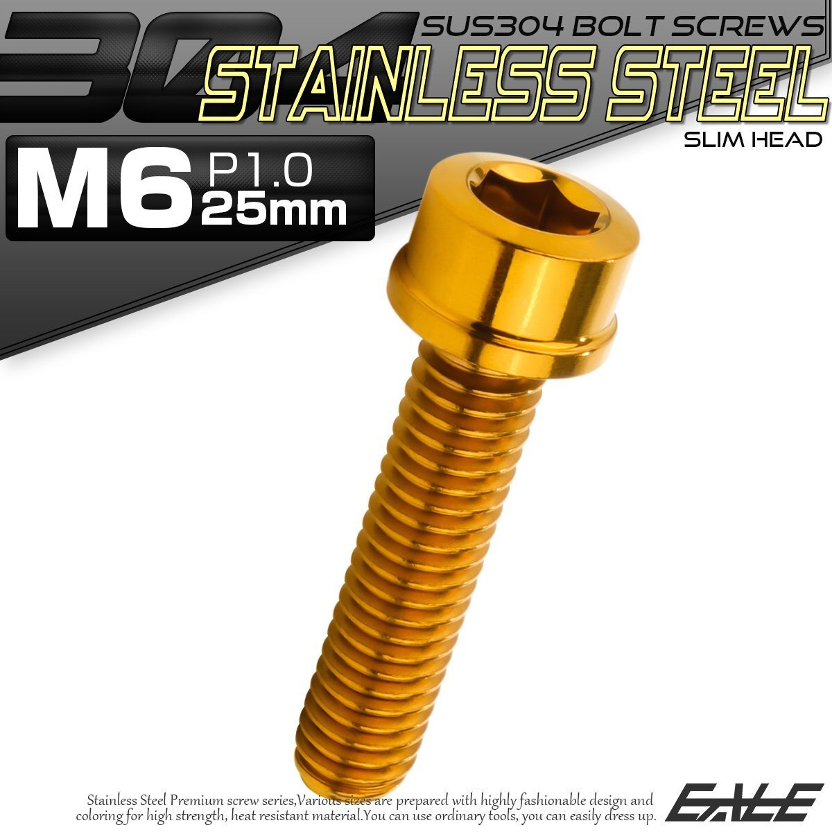 - キャップボルト M6×25mm P1.0 六角穴付きボルト スリムヘッド ゴールド カスタムボルト ステンレス製 TB1032