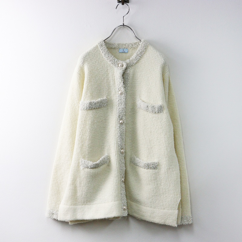 - 人気アイテム 大きいサイズ オンワード 23区 パールボタン ツイードニット ジャケット 7 アイボリー┃ハオリ 羽織【2400014590074】
