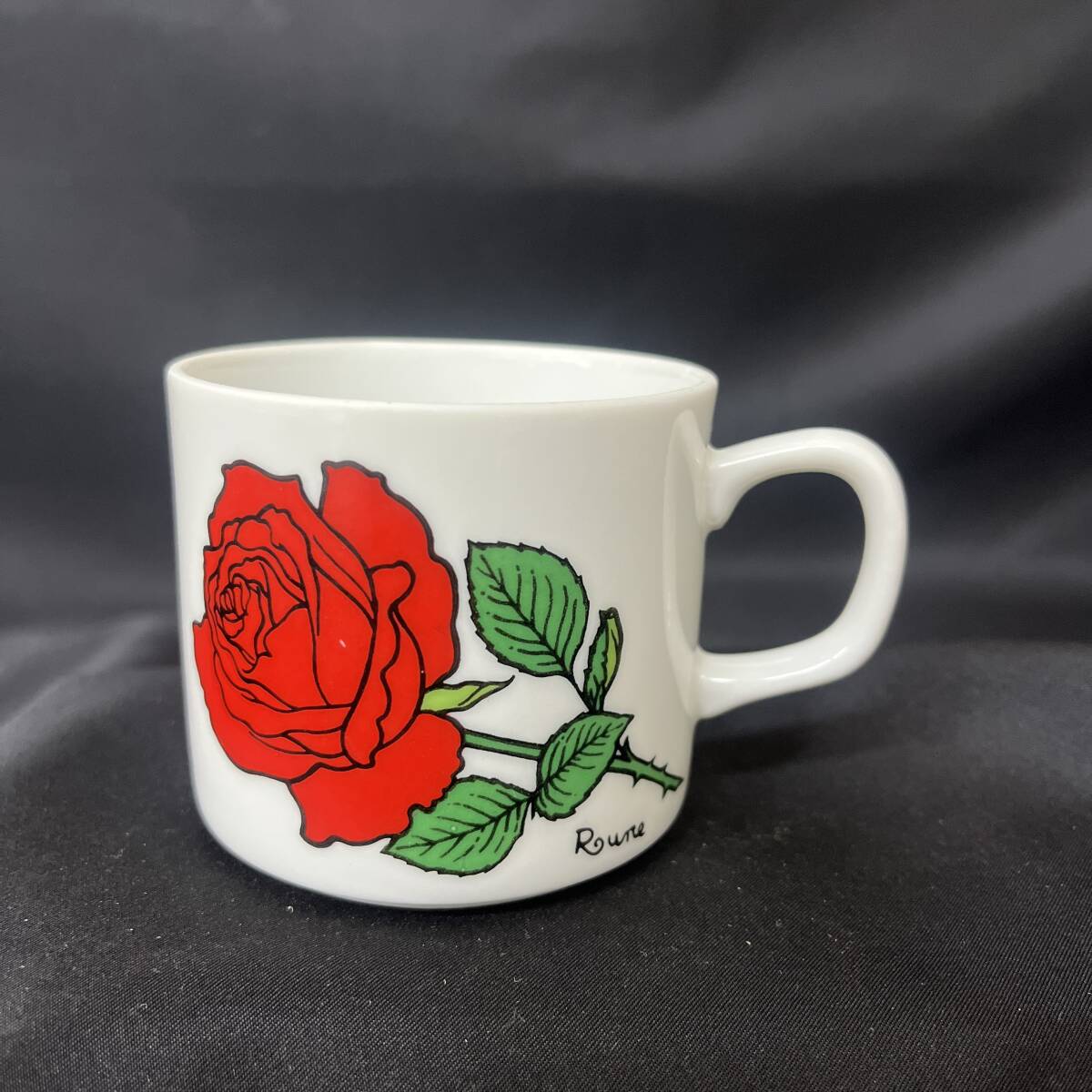 - 昭和 レトロ 内藤ルネ rune 当時物 ローズ 薔薇 バラ カップ 赤
