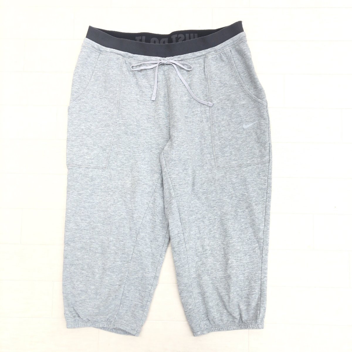 > NIKE ナイキ ストレッチ スウェット トレーニング カプリパンツ L グレー ジャージ ハーフパンツ クロップドパンツ スポーツ レディース
