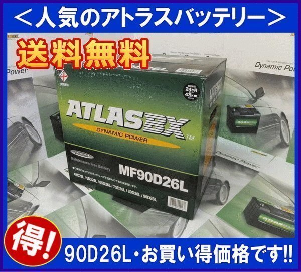 > 送料無料(北海道・沖縄除く) アトラス バッテリー AT90D26L 互換75D26L/80D26L/85D26L 2年または4万キロ保証