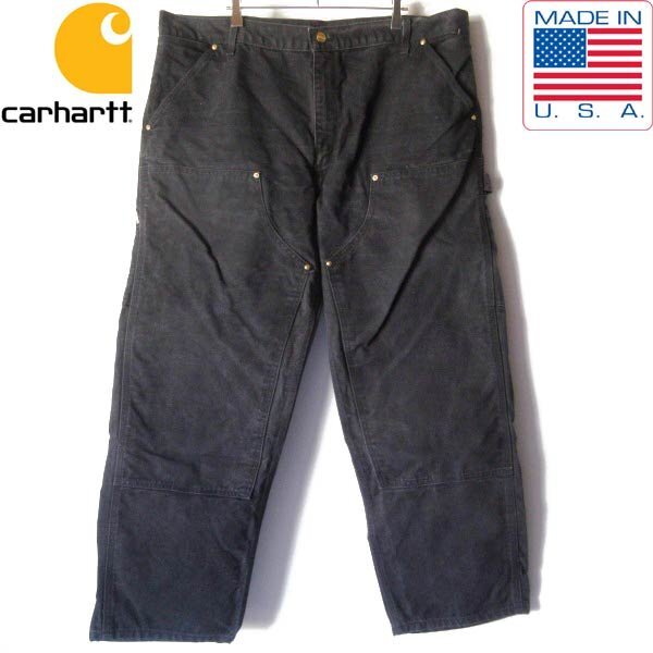 - 90s USA製 carhartt ダック ダブルニー ペインターパンツ フェード ブラック 実寸W41 L29 カーハート 黒 ビンテージ D152-25-0014ZVW
