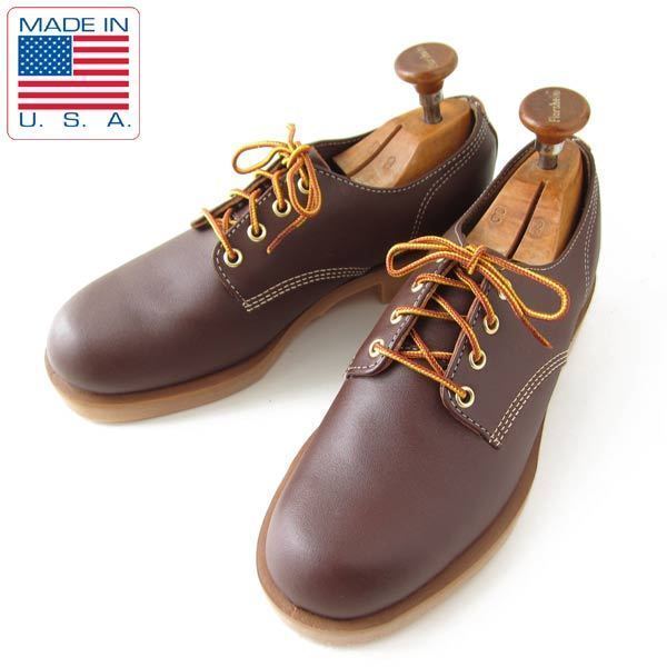 > 新品 USA製 4ホール 本革 レザー シューズ 茶系 幅広25cm~25.5cm メンズ 靴 アメリカ製 デッドストック d54-32-0017ZV