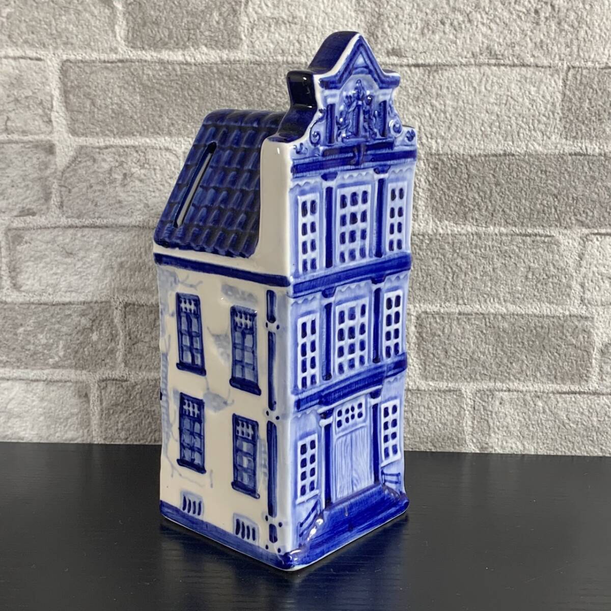 - usH-3204★Royal Blue Handpainted ブルーハウス 貯金箱 陶器製 高さ約18.5cm インテリア 保管品 現状品