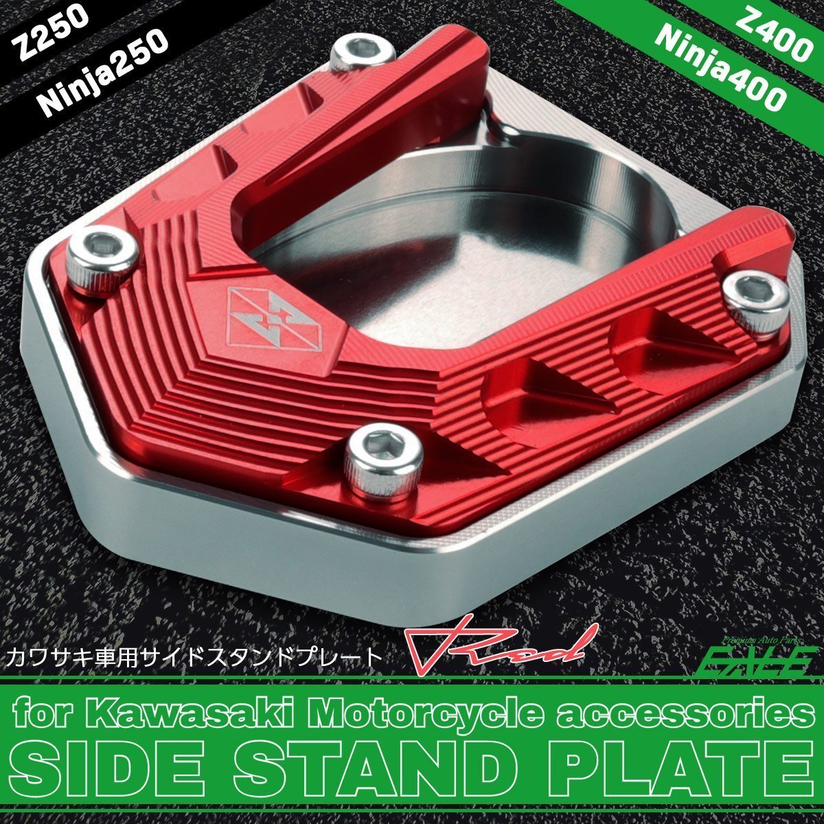 > サイドスタンドプレート Z250 2019- Z400 2019- ニンジャ250 2018- ニンジャ400 2018- レッド S-936-R