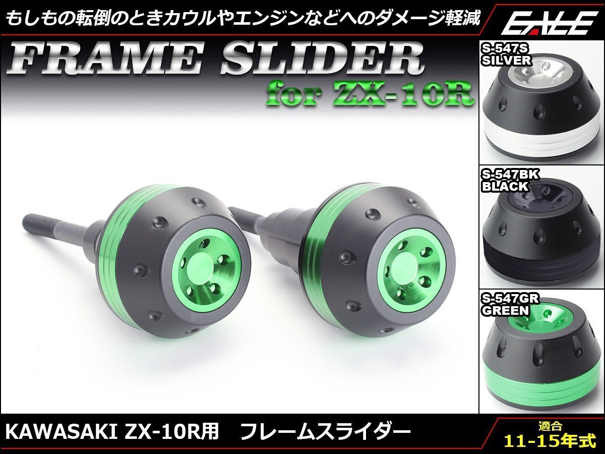 > Ninja ZX-10R (ZX1000J/K 前期/後期) 11~15年式 アルミ削り出し フレーム スライダー 左右セット グリーン S-547-GR