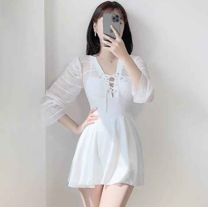 - レディース 体型カバー 水着 オールインワン ワンピース水着 スカート水着 フリル スイムウェア S ホワイト